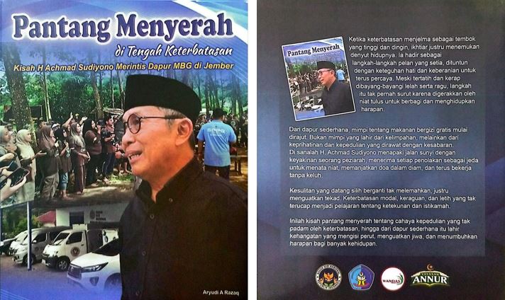 Kisah perjuangan tersebut diabadikan dalam buku Pantang Menyerah di Tengah Keterbatasan: Kisah H. Achmad Sudiyono Merintis Dapur MBG di Jember. Buku ini merekam secara utuh lika-liku perjalanan H. Achmad dalam merintis dapur MBG, sebuah proses yang jauh dari kata mudah.